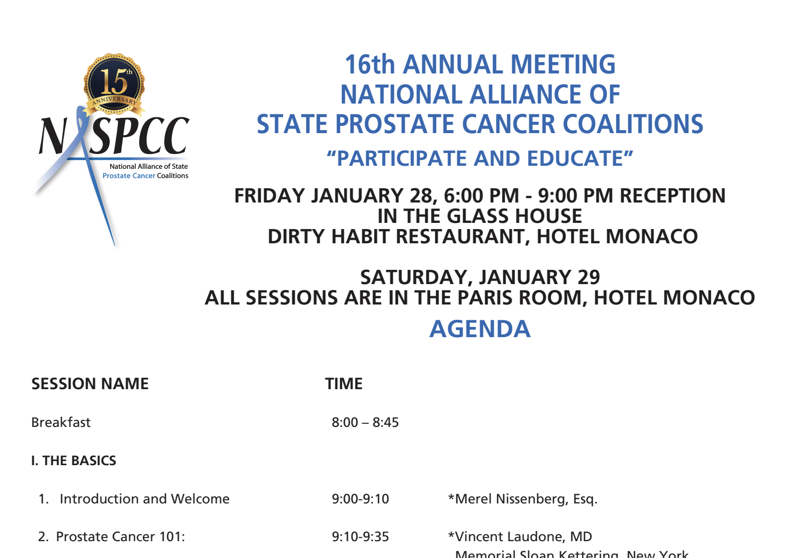 National Alliance of State Prostate Cancer Coalitions Report from the 16th Annual Meeting and Awards Dinner
